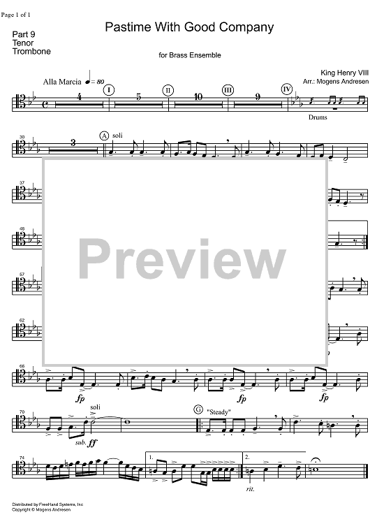 Digital Sheet Music for Pastime With Good Company - Tenor Trombone by Mogens Andresen, Henry VIII scored for Brass Ensemble; id:327809