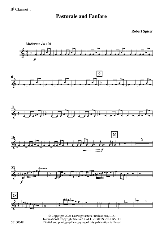 Digital Sheet Music for Pastorale and Fanfare - Bb Clarinet 1 by Robert Spicer scored for Concert Band; id:505047