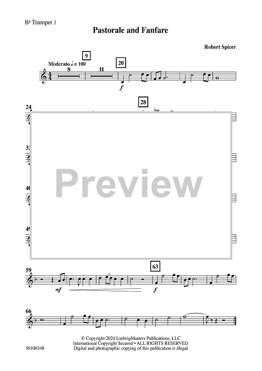Digital Sheet Music for Pastorale and Fanfare - Bb Trumpet 1 by Robert Spicer scored for Concert Band; id:505056