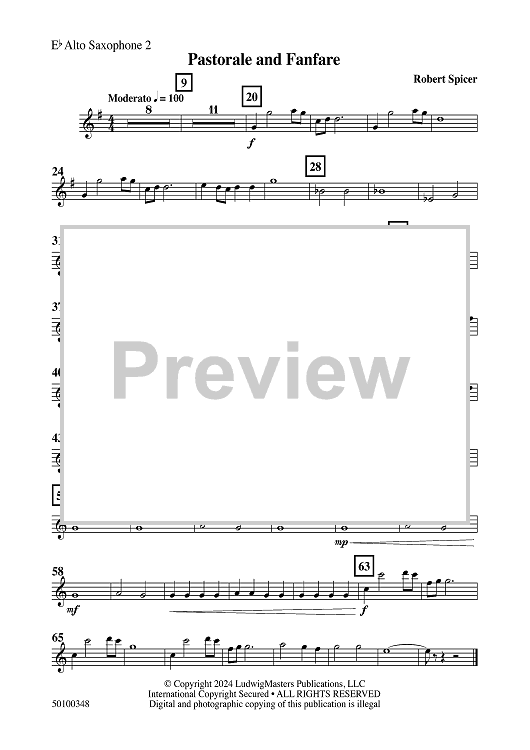 Digital Sheet Music for Pastorale and Fanfare - Eb Alto Sax 2 by Robert Spicer scored for Concert Band; id:505054