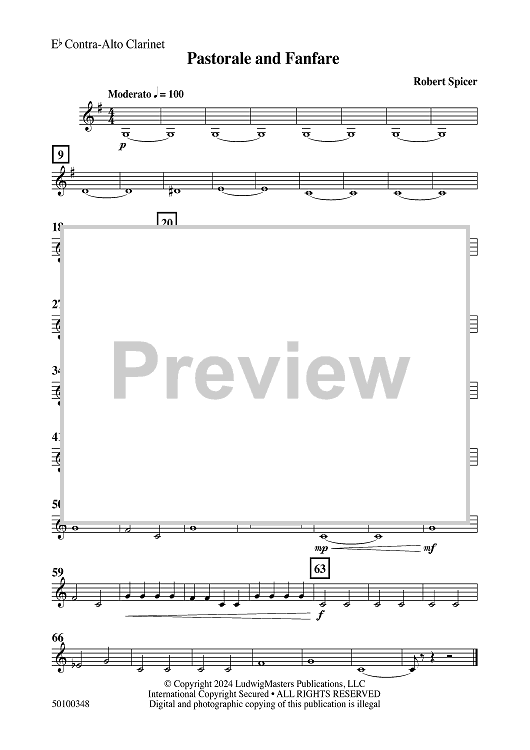 Digital Sheet Music for Pastorale and Fanfare - Eb Contra Alto Clarinet by Robert Spicer scored for Concert Band; id:505050