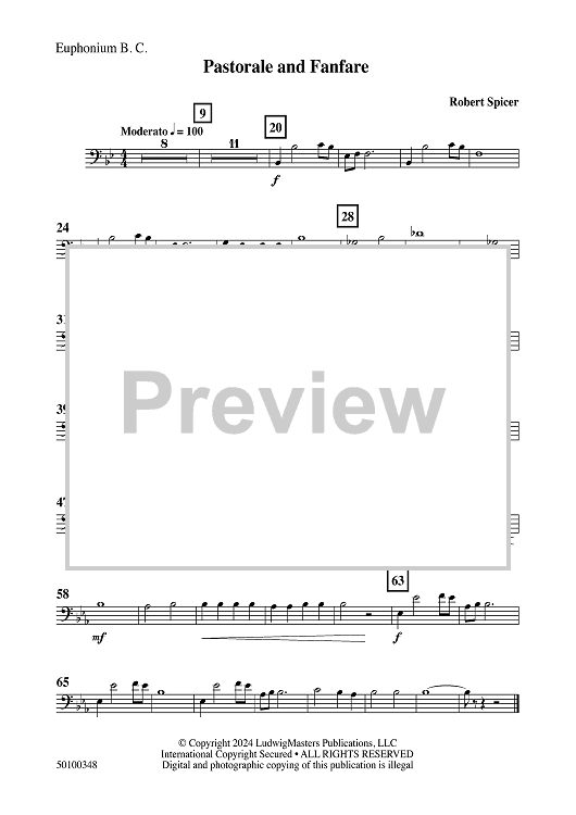 Digital Sheet Music for Pastorale and Fanfare - Euphonium BC by Robert Spicer scored for Concert Band; id:505064