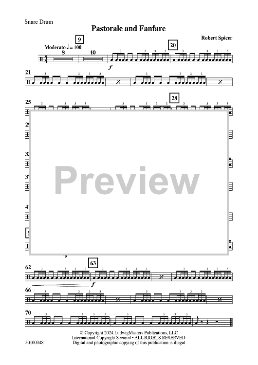 Digital Sheet Music for Pastorale and Fanfare - Snare Drum by Robert Spicer scored for Concert Band; id:505069