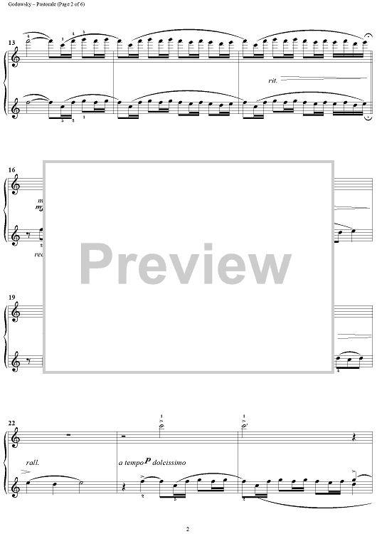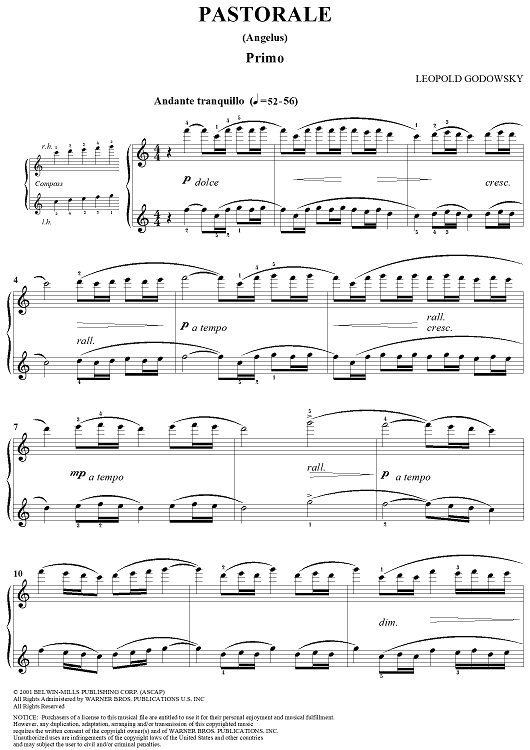 Digital Sheet Music for Pastorale by Leopold Godowsky scored for 1 Piano, 4 Hands; id:285052