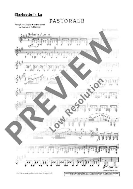 Digital Sheet Music for Pastorale - Set of Parts by Igor Stravinsky scored for Violin With Oboe, Cor Anglais, Clarinet (a) And Bassoon; id:472838