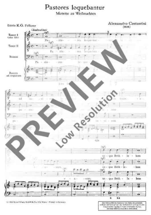 Digital Sheet Music for Pastores loquebantur - Score by Karl Gustav Fellerer, Alessandro Costantini scored for Men's Choir (ttb) Or Mixed Choir (atb) With Organ; id:471564