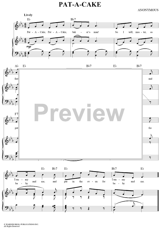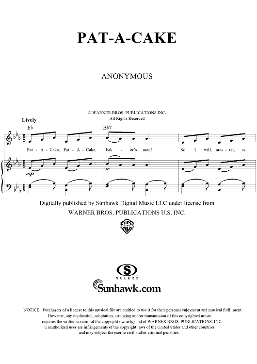 Digital Sheet Music for Pat-A-Cake by Unknown Writer scored for Piano/Vocal/Chords; id:277136
