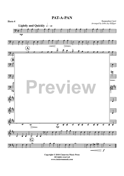 Digital Sheet Music for Pat-A-Pan - Horn 4 in F by John Jay Hilfiger, Burgundian Carol scored for Horn Quartet; id:427258