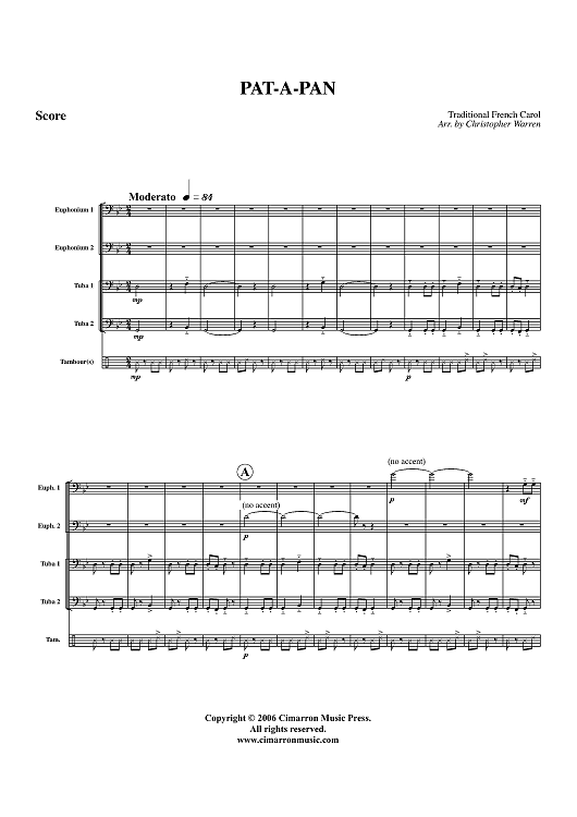 Digital Sheet Music for Pat-a-Pan - Score by , Christopher Warren, Traditional French Carol scored for Tuba Quartet; id:356604