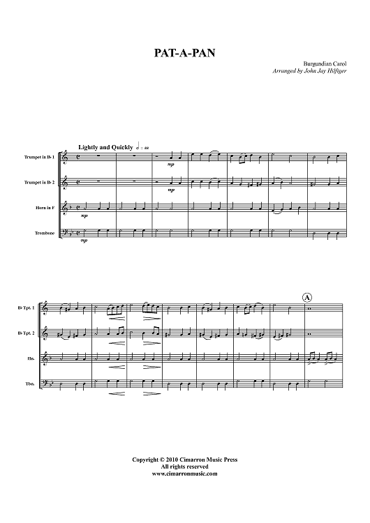 Digital Sheet Music for Pat-A-Pan - Score by John Jay Hilfiger, Burgundian Carol scored for Brass Quartet; id:427248