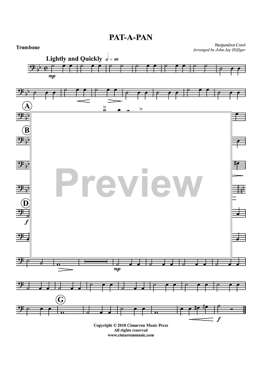 Digital Sheet Music for Pat-A-Pan - Trombone by John Jay Hilfiger, Burgundian Carol scored for Brass Quartet; id:427252