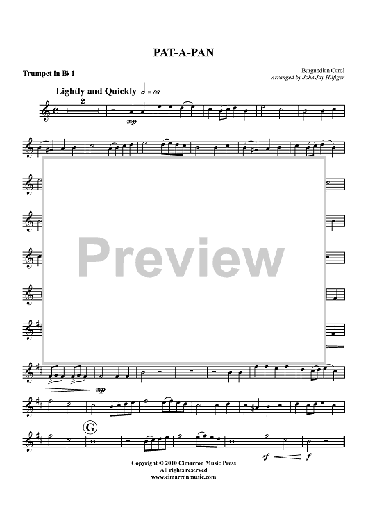 Digital Sheet Music for Pat-A-Pan - Trumpet 1 in Bb by John Jay Hilfiger, Burgundian Carol scored for Brass Quartet; id:427249