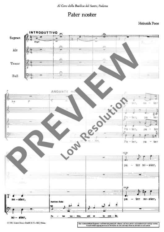 Digital Sheet Music for Pater Noster - Choral Score by Heinrich Poos scored for Mixed Choir (satb), Baritone Solo And Organ Or Piano; id:479512