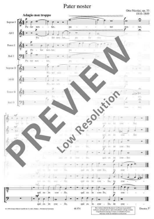 Digital Sheet Music for Pater Noster - Choral Score by Otto Nicolai scored for Mixed Choir (satb/satb) With Soloists (satb/satb); id:479534