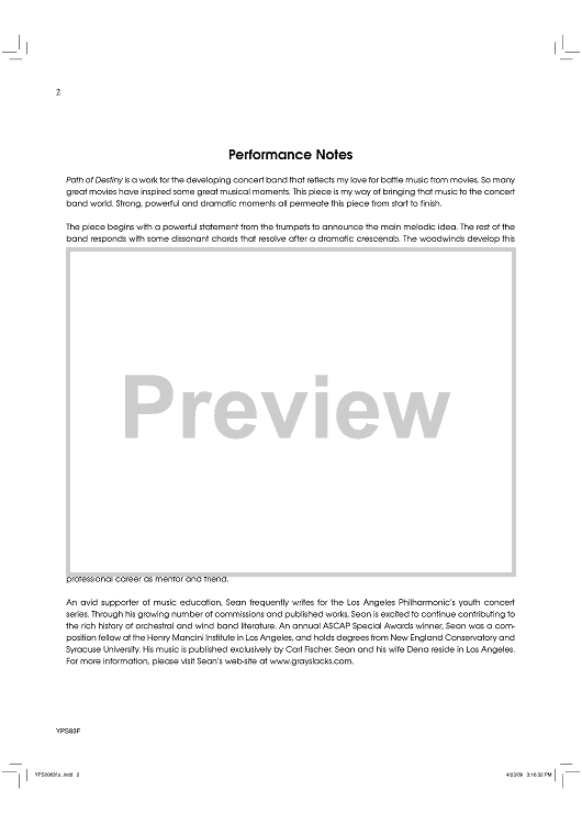 "Path of Destiny - Score" Sheet Music by Sean O'Loughlin