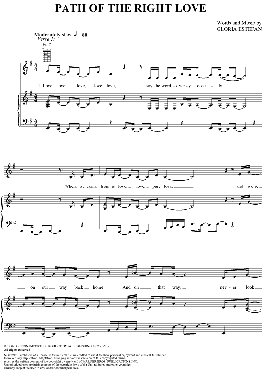 Digital Sheet Music for Path of the Right Love by Gloria Estefan scored for Piano/Vocal/Chords; id:206961