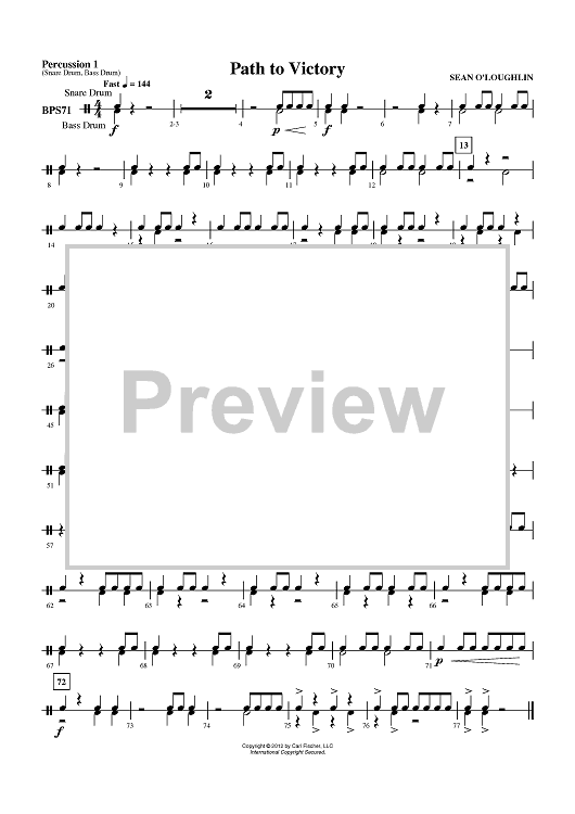 "Path to Victory - Percussion 1" Sheet Music by Sean O'Loughlin