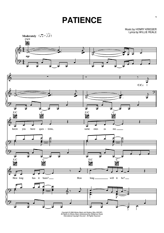 Digital Sheet Music for Patience by Henry Krieger, Eddie Murphy, Willie Reale scored for Piano/Vocal/Chords; id:395774