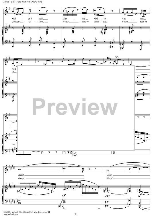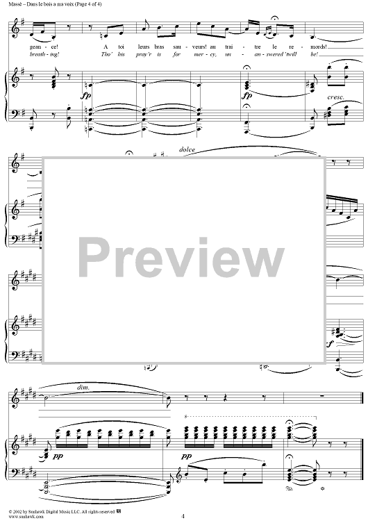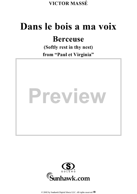 Digital Sheet Music for Paul et Virginia, "Dans le bois a ma voix" (Softly rest in thy nest) by Victor Massé scored for Voice/Piano; id:253576