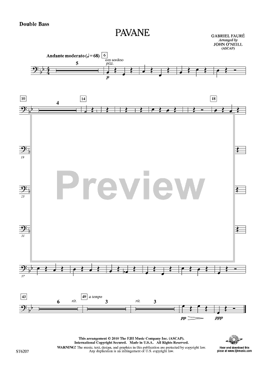 Digital Sheet Music for Pavane - Double Bass by Gabriel Fauré, John O'Neil scored for Orchestra; id:411531