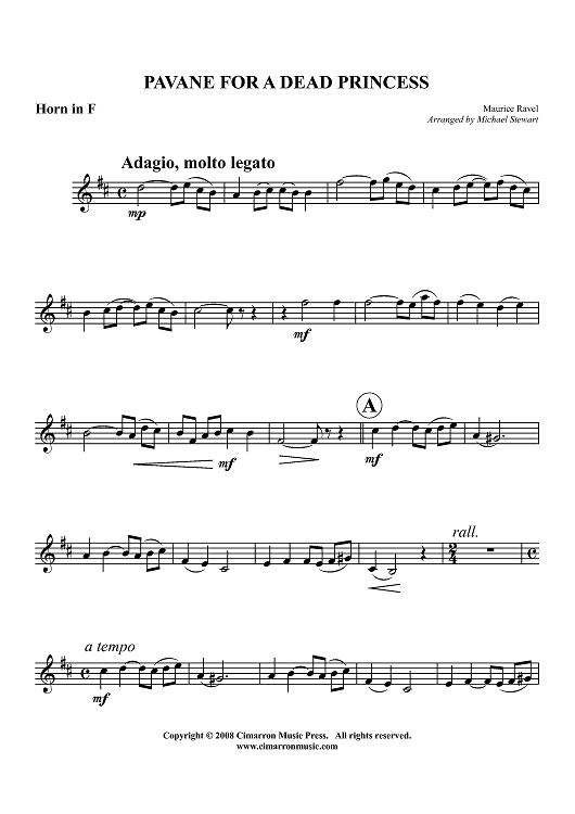 "Pavane for a Dead Princess - Horn in F" Sheet Music by Maurice Ravel