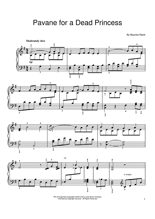 Digital Sheet Music for Pavane (For A Dead Princess) by Maurice Ravel scored for Easy Piano; id:388650