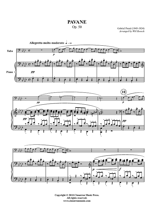 Digital Sheet Music for Pavane, Op. 50 - Piano Score by Gabriel Fauré, Will Roesch scored for Tuba/Piano; id:426975