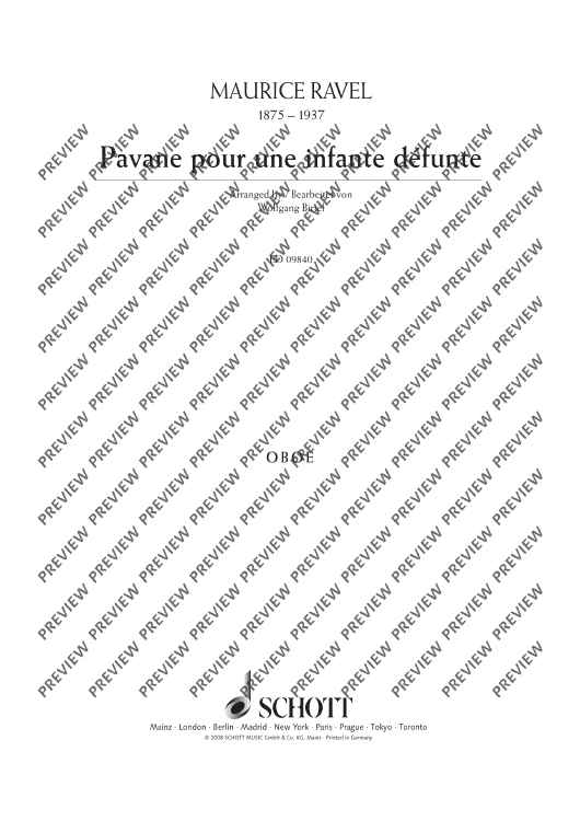 "Pavane pour une infante défunte" Sheet Music by Maurice Ravel