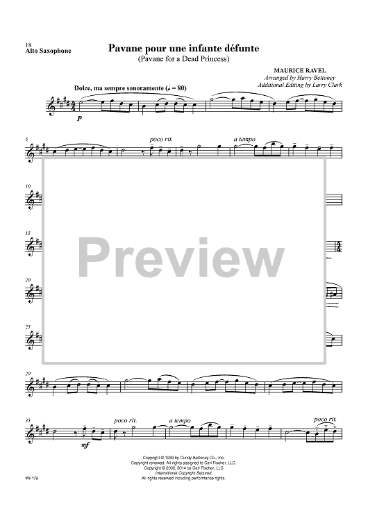 Digital Sheet Music for Pavane pour une infante défunte (Pavane for a Dead Princess) by Maurice Ravel, Harry Bettoney scored for Eb Alto Sax/Piano; id:451695