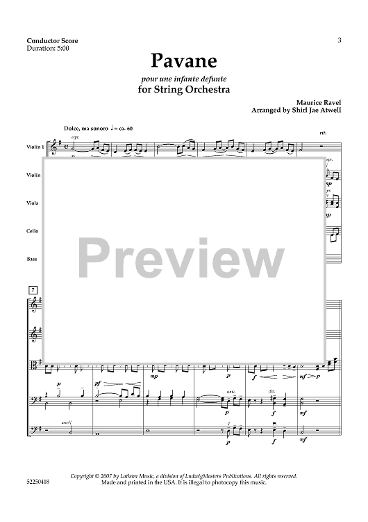 Digital Sheet Music for Pavane pour une infante defunte - Score by Maurice Ravel, Shirl Jae Atwell scored for String Orchestra; id:458433