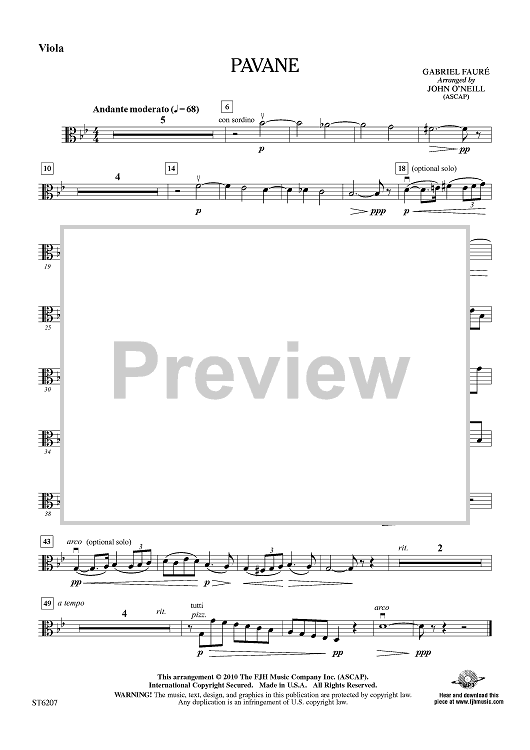 Digital Sheet Music for Pavane - Viola by Gabriel Fauré, John O'Neil scored for Orchestra; id:411529