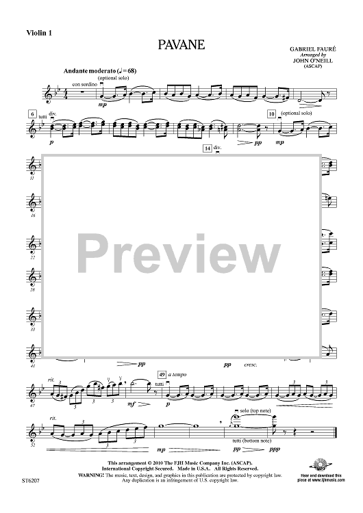 Digital Sheet Music for Pavane - Violin 1 by Gabriel Fauré, John O'Neil scored for Orchestra; id:411526