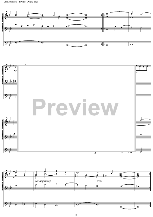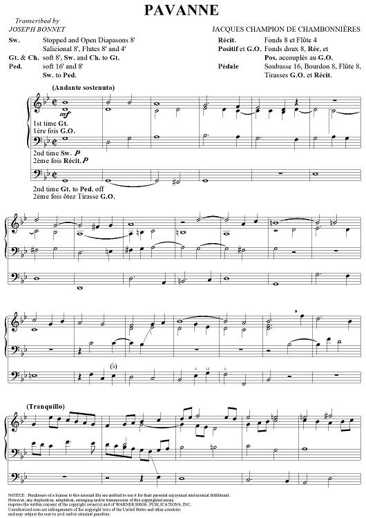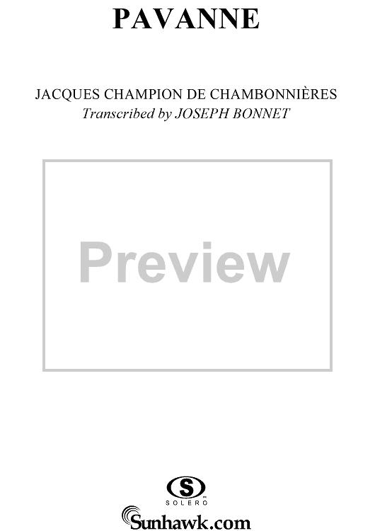 Digital Sheet Music for Pavanne by Jacques Champion de Chambonnières, Joseph Bonnet scored for Organ Solo; id:272571
