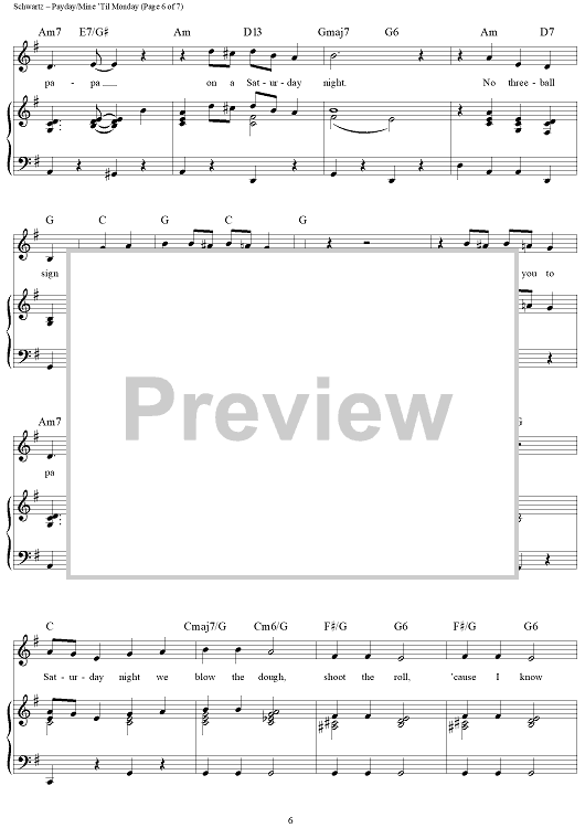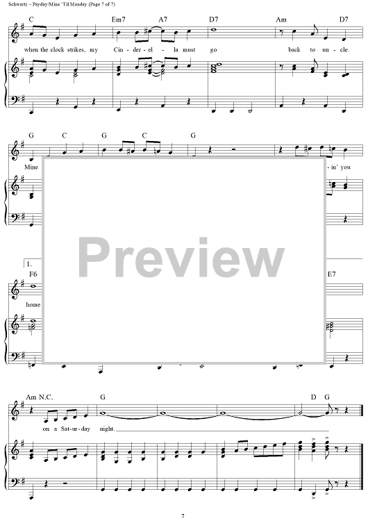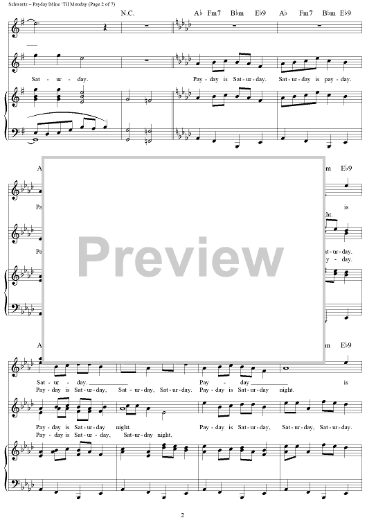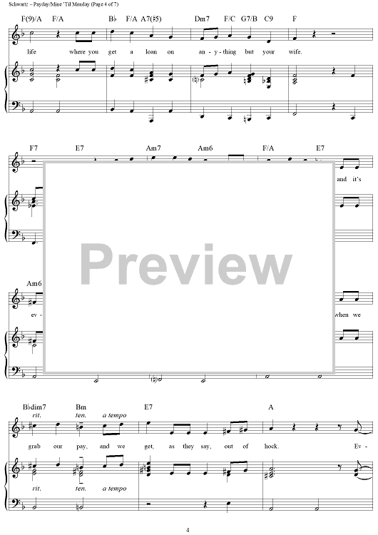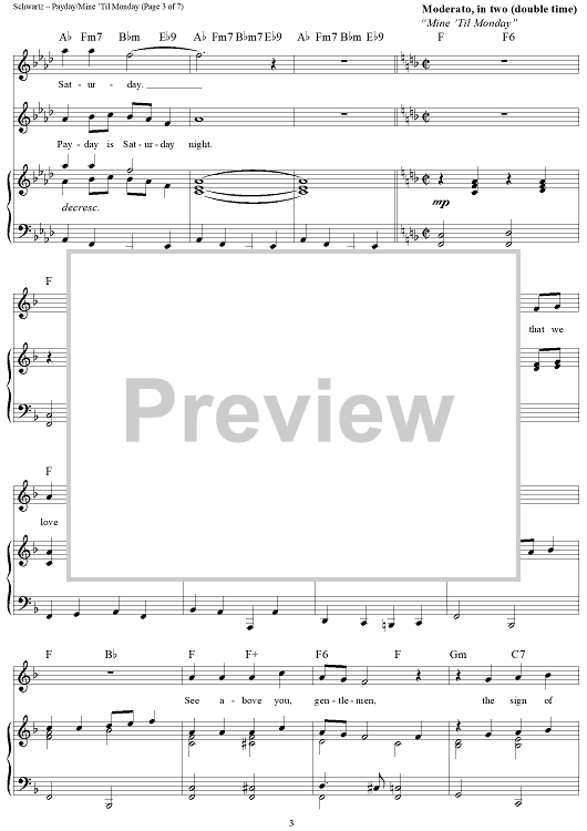 Digital Sheet Music for Payday/Mine 'til Monday by Dorothy Fields, Arthur Schwartz scored for Piano/Vocal/Chords; id:310646