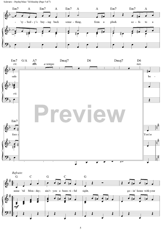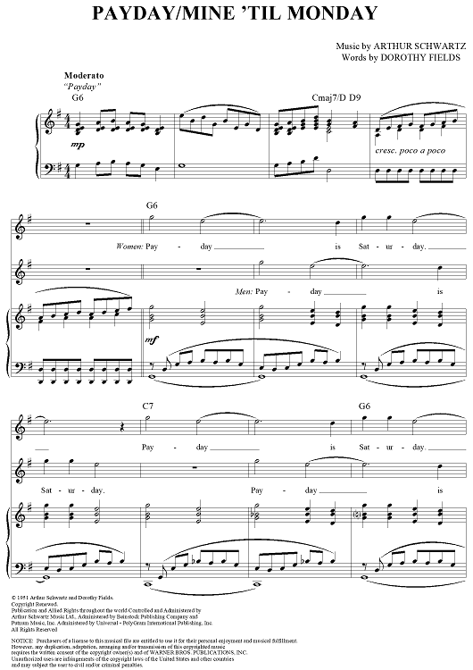 "Payday/Mine 'til Monday" Sheet Music by Arthur Schwartz