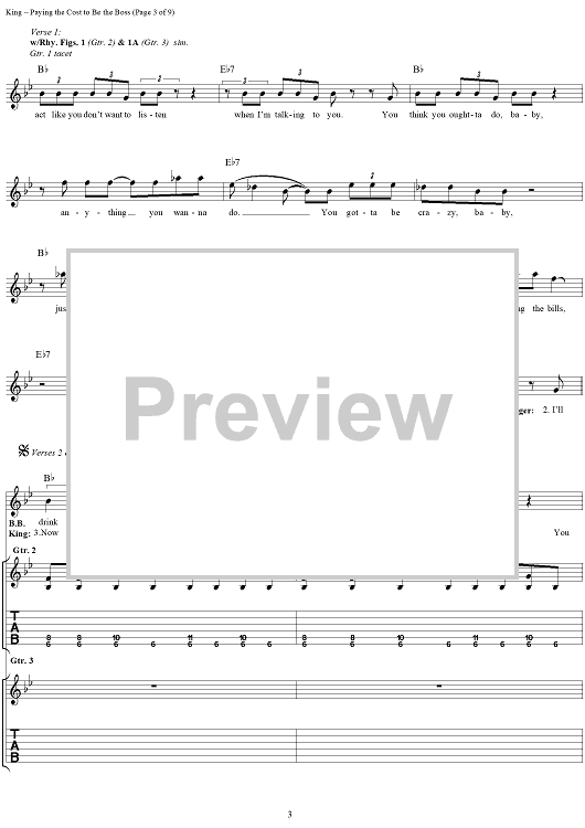 "Paying the Cost to Be the Boss" Sheet Music by B.B. King