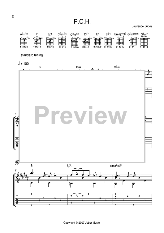 Digital Sheet Music for P.C.H. (No MP3) by Laurence Juber scored for Guitar Tab; id:451979