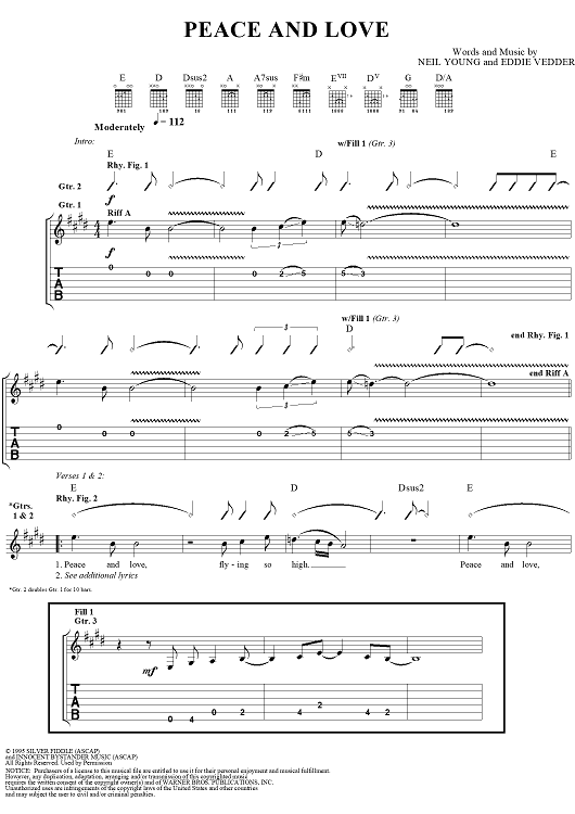 "Peace and Love" Sheet Music by Neil Young