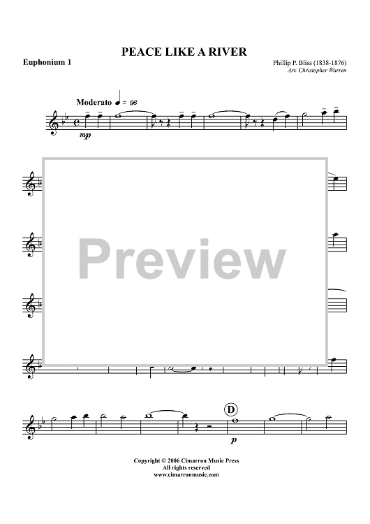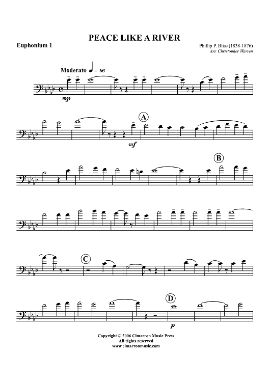"Peace Like a River - Euphonium 1 BC/TC" Sheet Music by Philip P. Bliss