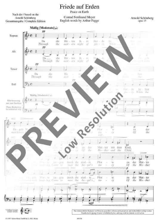 Digital Sheet Music for Peace on Earth - Choral Score by Arnold Schoenberg scored for Mixed Choir (ssaattbb) A Cappella Or With Kleinem Orchestra; id:476518