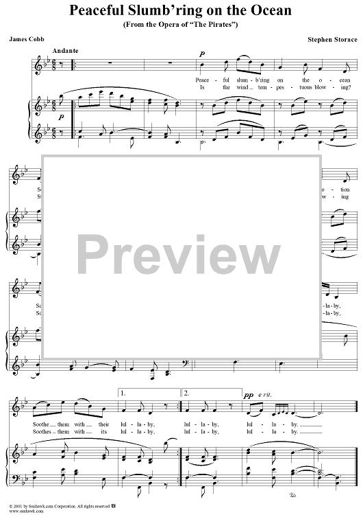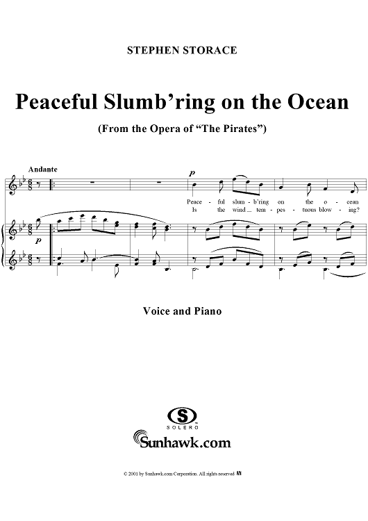 Digital Sheet Music for Peaceful slumb'ring on the ocean by James Cobb, Stephen Storace scored for Piano/Vocal; id:258847