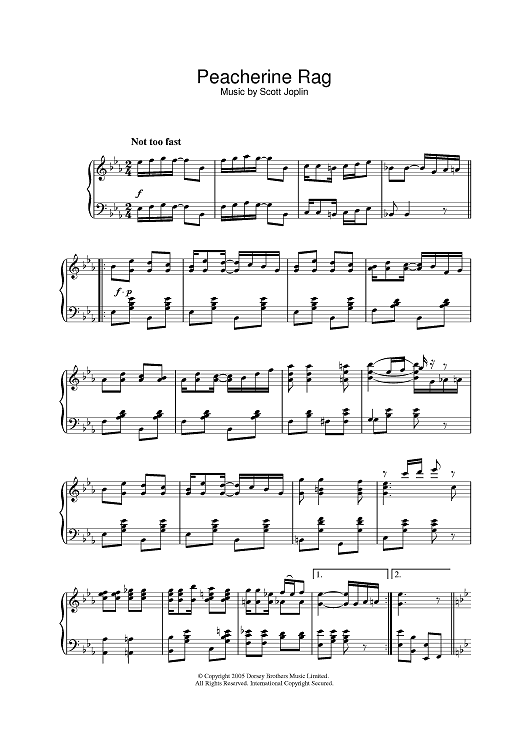Digital Sheet Music for Peacherine Rag by Scott Joplin scored for Piano; id:383270