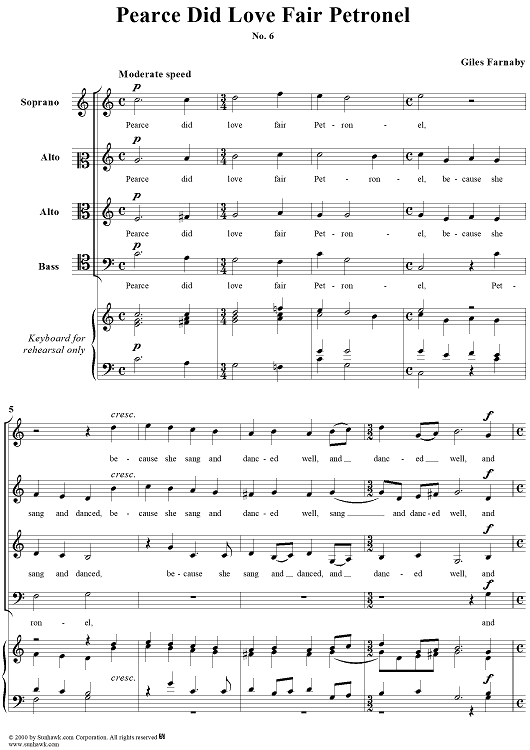 Digital Sheet Music for Pearce Did Love Fair Petronel by Giles Farnaby, Rev. Edmund Horace Fellowes scored for Four-part Mixed Chorus; id:269743