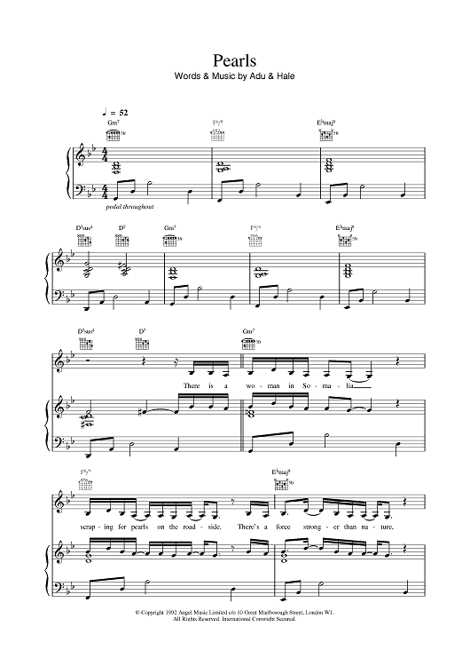 Digital Sheet Music for Pearls by Sade Adu, Andrew Hale, Sade scored for Piano/Vocal/Chords; id:375956