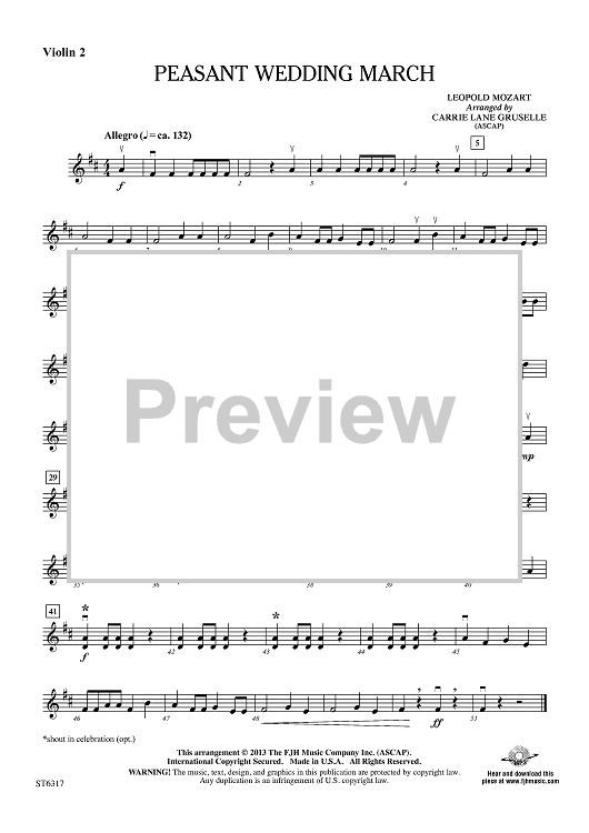 Digital Sheet Music for Peasant Wedding March - Violin 2 by Leopold Mozart, Carrie Lane Gruselle scored for String Orchestra; id:437033