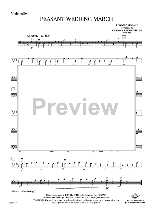 Digital Sheet Music for Peasant Wedding March - Violoncello by Leopold Mozart, Carrie Lane Gruselle scored for String Orchestra; id:437035