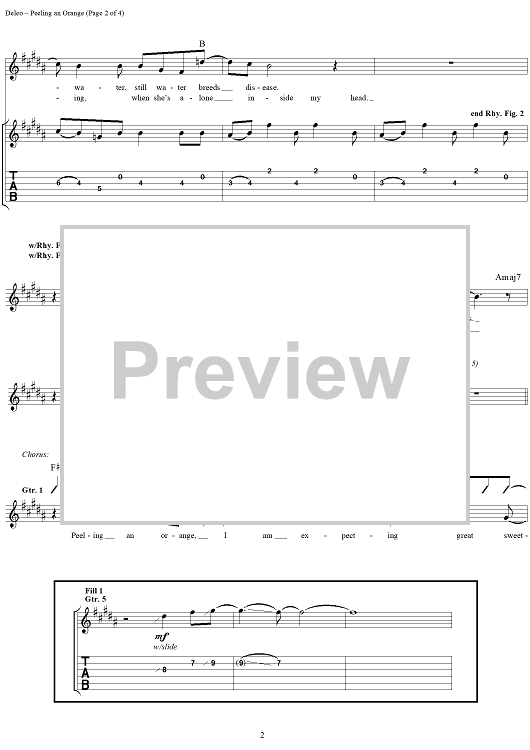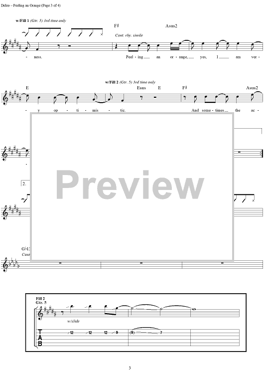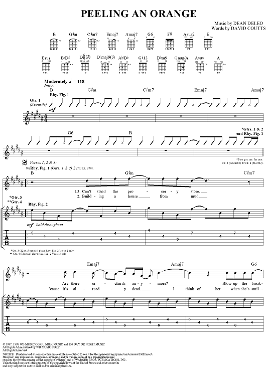 Digital Sheet Music for Peeling An Orange by Robert DeLeo, David Coutts, Talk Show scored for Guitar Tab/Vocal; id:120106