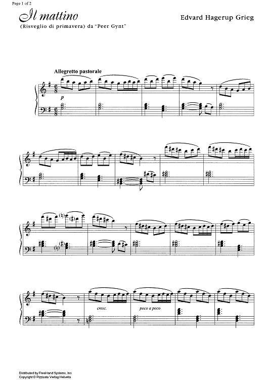Digital Sheet Music for Peer Gynt Op.23 No.13 - Morgenstemning (Morning-mood) by Edvard Grieg scored for Piano Solo; id:329075