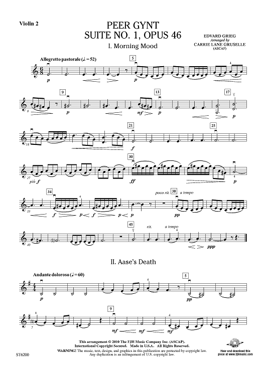 Digital Sheet Music for Peer Gynt Suite No. 1, Op. 46 - Violin 2 by Edvard Grieg, Carrie Lane Gruselle scored for Orchestra; id:411472