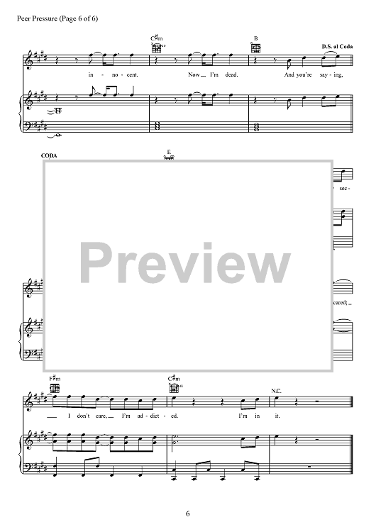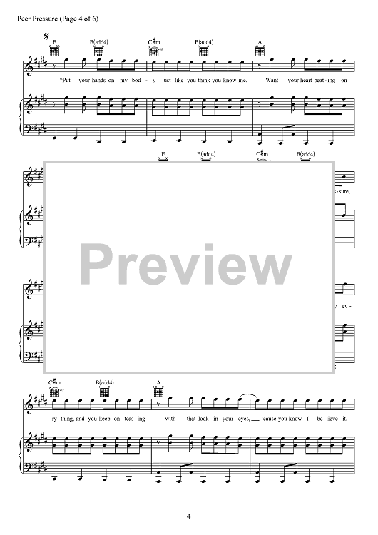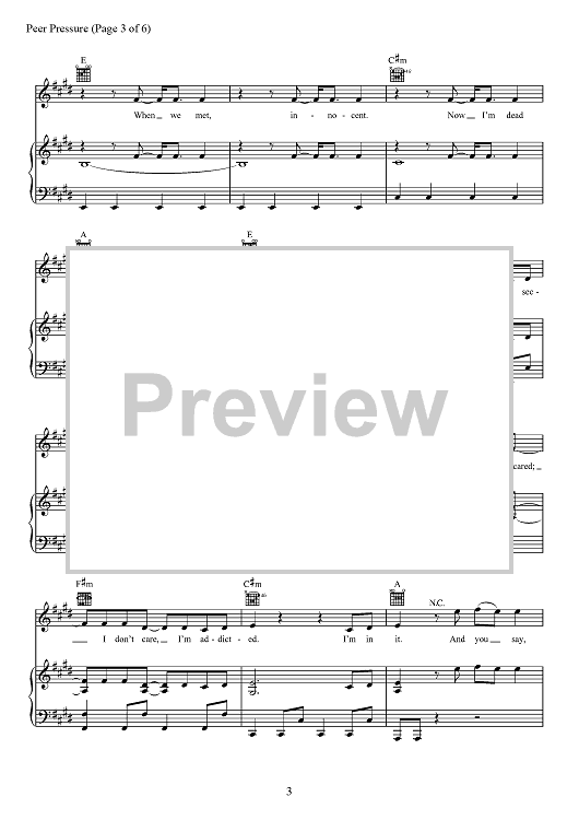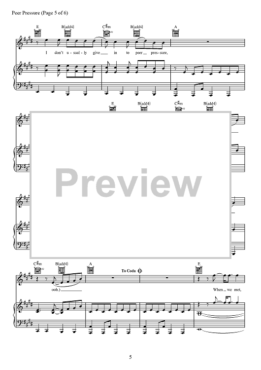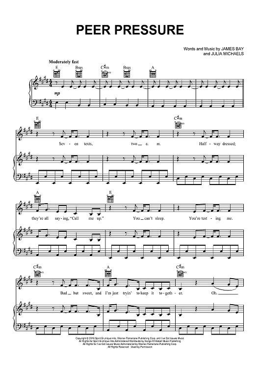 Digital Sheet Music for Peer Pressure by Julia Michaels, James Bay scored for Piano/Vocal/Chords; id:467410